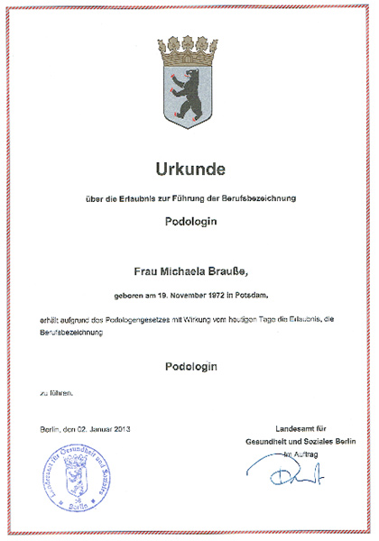 Ich absolvierte eine 3-jährigen Ausbildung zur Friseurin und Kosmetikerin. Nach einer Weiterbildung zur Fußpflegerin machte ich mich 2003 mit einem Kosmetik u. Fußplegestudio selbstständig. Um meinen Kunden eine noch qualitativere und fachgerechte Behandlung bieten zu können fing ich 2013 eine 3 1/2- jährige Teilzeitausbildung zur Podologin in der Ausbildungsstätte D&B Berlin an. Mein Praktikum machte ich in der Praxis von Michaela Brauße. Im März 2017 beendete ich erfolgreich meine Podologieausbildung. Seit Juli 2017 sind wir Partner und führen die Praxis gemeinsam.
